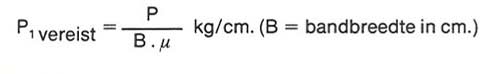 tussen band en trommel een bepaald minimum aanrakingsoppervlak vereist