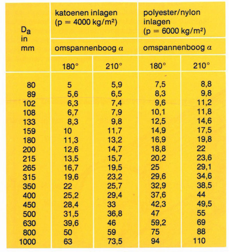 Deze kracht moet door de aandrijftrommel met Ø D, met een wrijvingscoëfficiënt