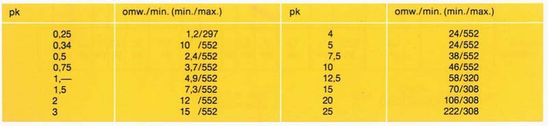 worden bepaald. De tabel geldt bij een waarde van µ = 1 en een